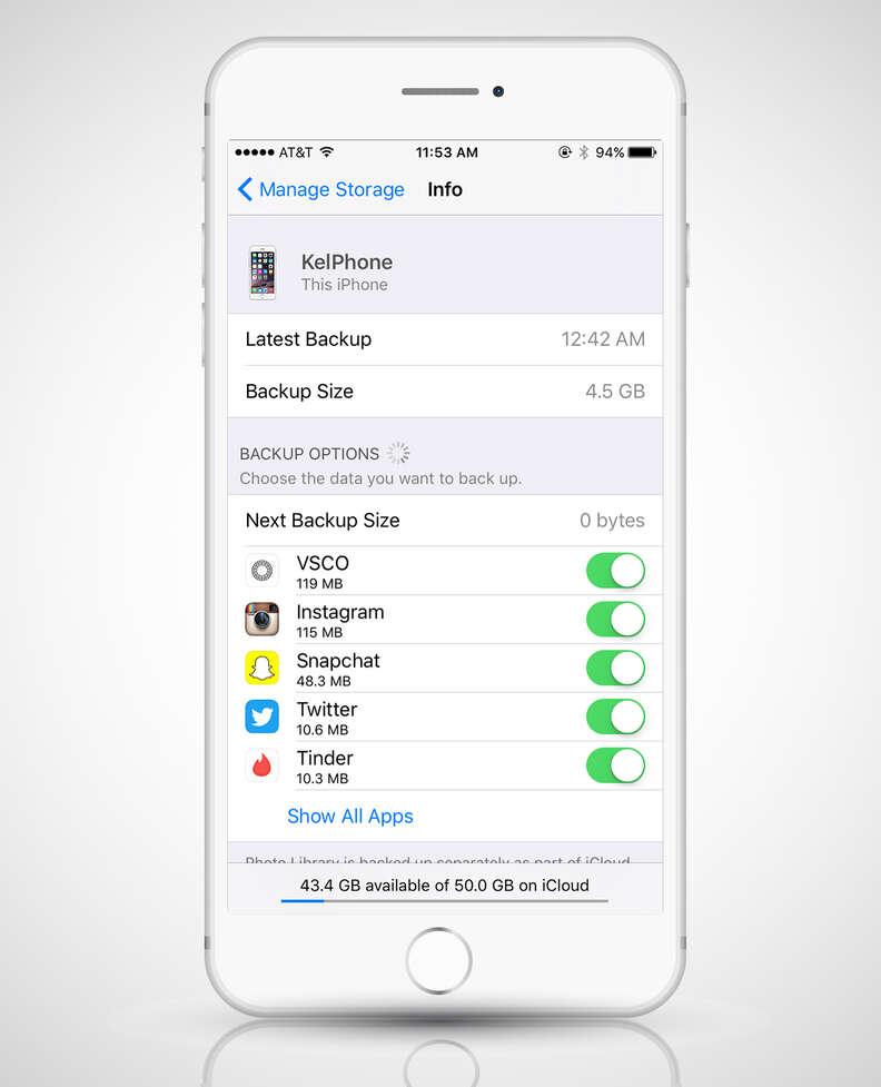 No one wants to lose their contacts and photos when their 6s falls in the toilet, but does it really matter if Words With Friends and Tinder are restored on your new device? Hopefully not. By default, these apps automatically back up to the iCloud, so you can free up a decent amount of space by disabling that option.